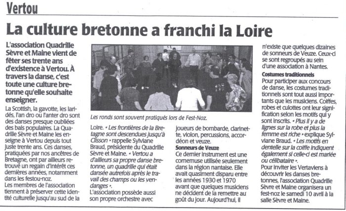 La presse parle du Cercle Celtique de Vertou