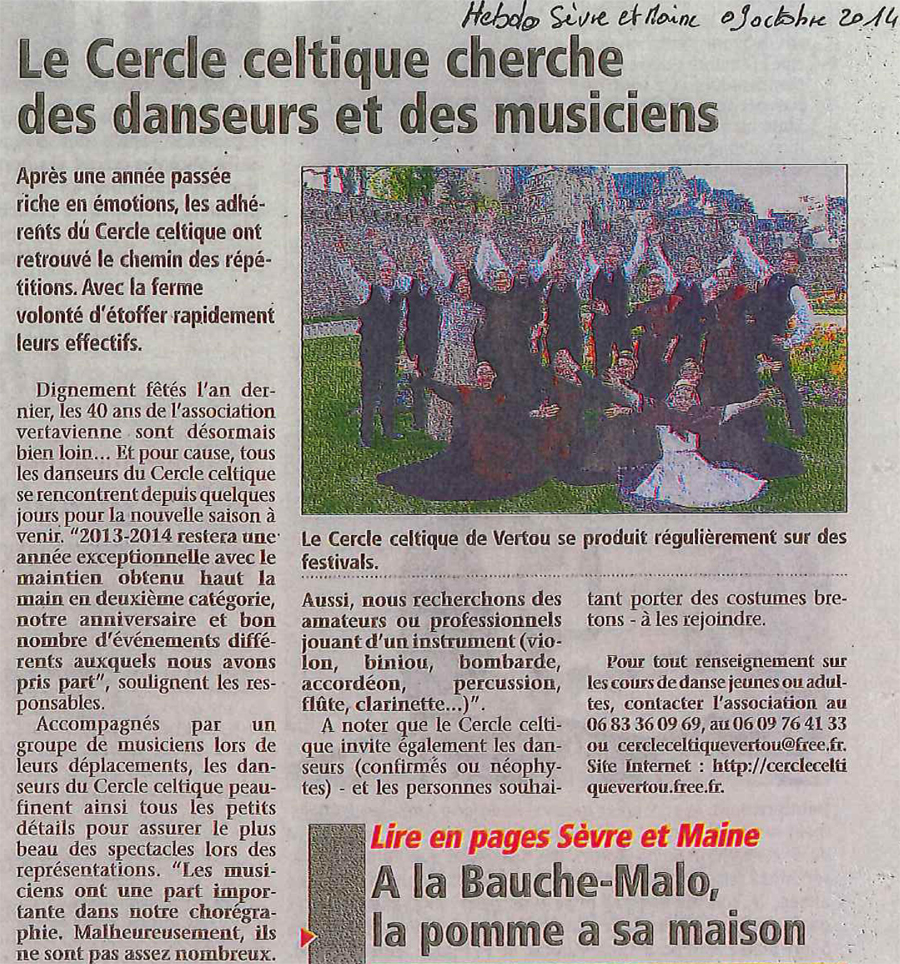 La presse parle du Cercle Celtique de Vertou
