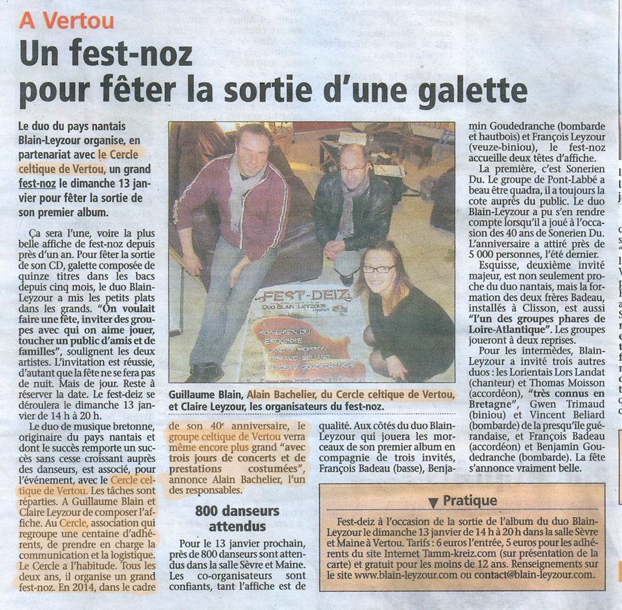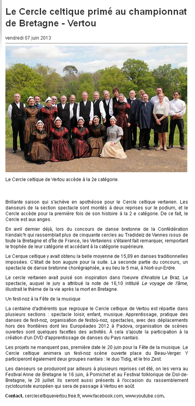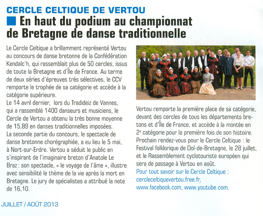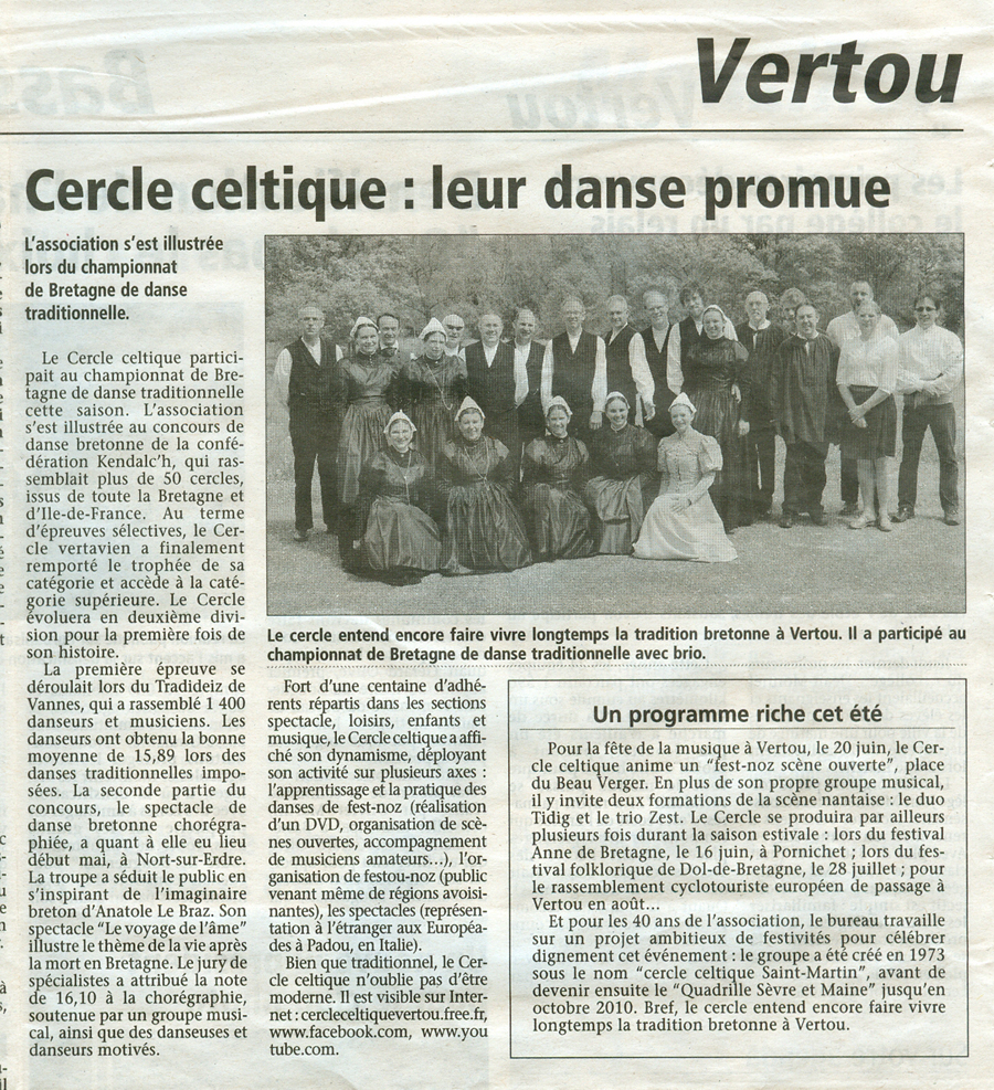 Article précédent : 2014 - Le Cercle Celtique de Vertou fête ses 40 ans - Hebod Sèvre et Maine - 9 octobre 2014